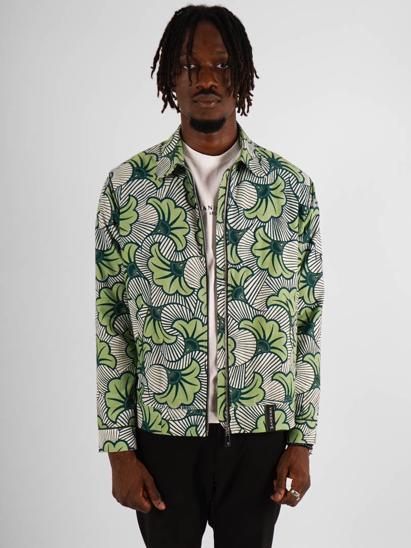 Cette veste légère est confectionnée en wax authentique, produit en Côte d’Ivoire et constitué à 100% de coton.